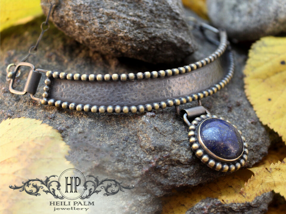 Messingist kaelaehe antiikse keti ja lasuriidiga
