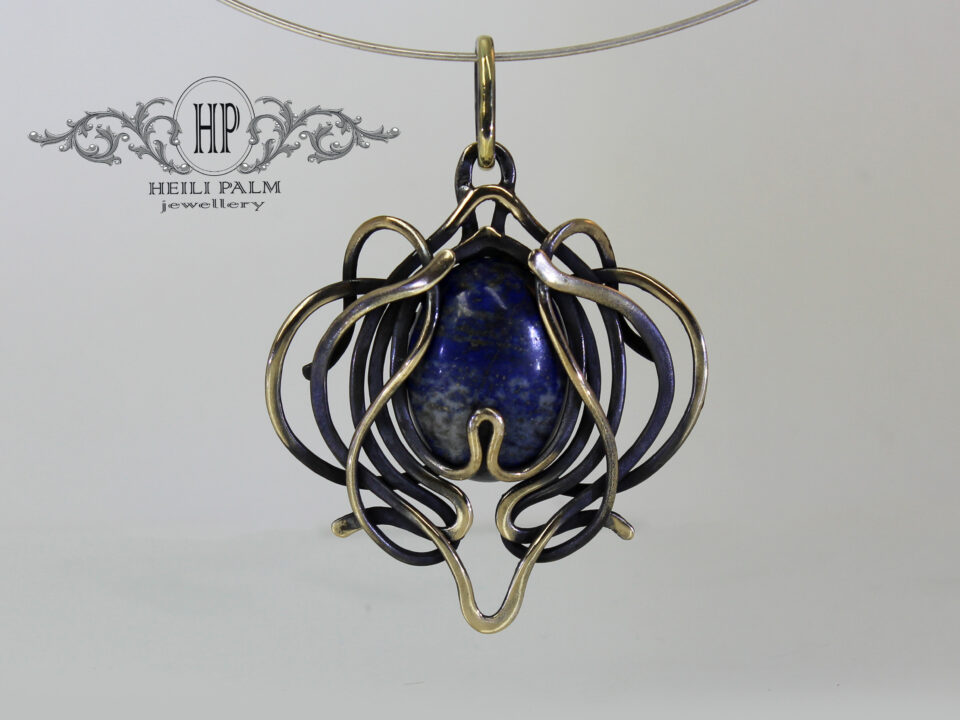 165,00 €Messingist kaelaehe antiikse keti ja lasuriidiga.