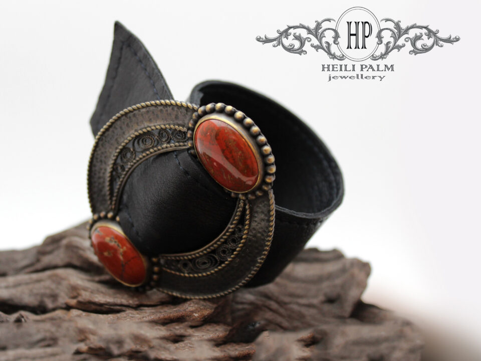 195,00 €Messingist ja nahast käevõru Jaspis poolvääriskividega