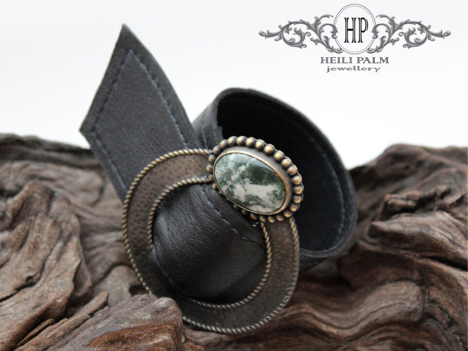 Messingist ja nahast käevõru Jaspis poolvääriskividega