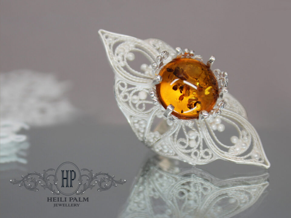 1 380,00 €Filigraan sõrmus, 925 hõbe ja merevaik “Glacies Filigra”